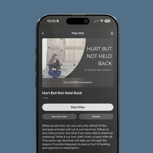 This 7-day devotional, with over 250,000 completions, helping readers confront pain, betrayal, and the lies that try to hold them back while guiding them toward freedom and healing. Through practical, faith-filled steps, it leads you on a journey from hurt to peace, from rejection to redemption, so you can move forward without limits.