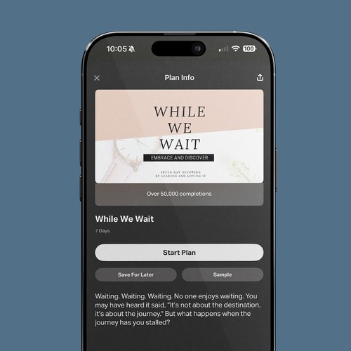 This 7-day devotional, has reached over 50,000 completions, helping readers navigate seasons of waiting with faith, purpose, and perspective. Through encouraging, practical insights, it teaches you how to embrace the journey, trust God in the process, and discover growth even in the in-between.